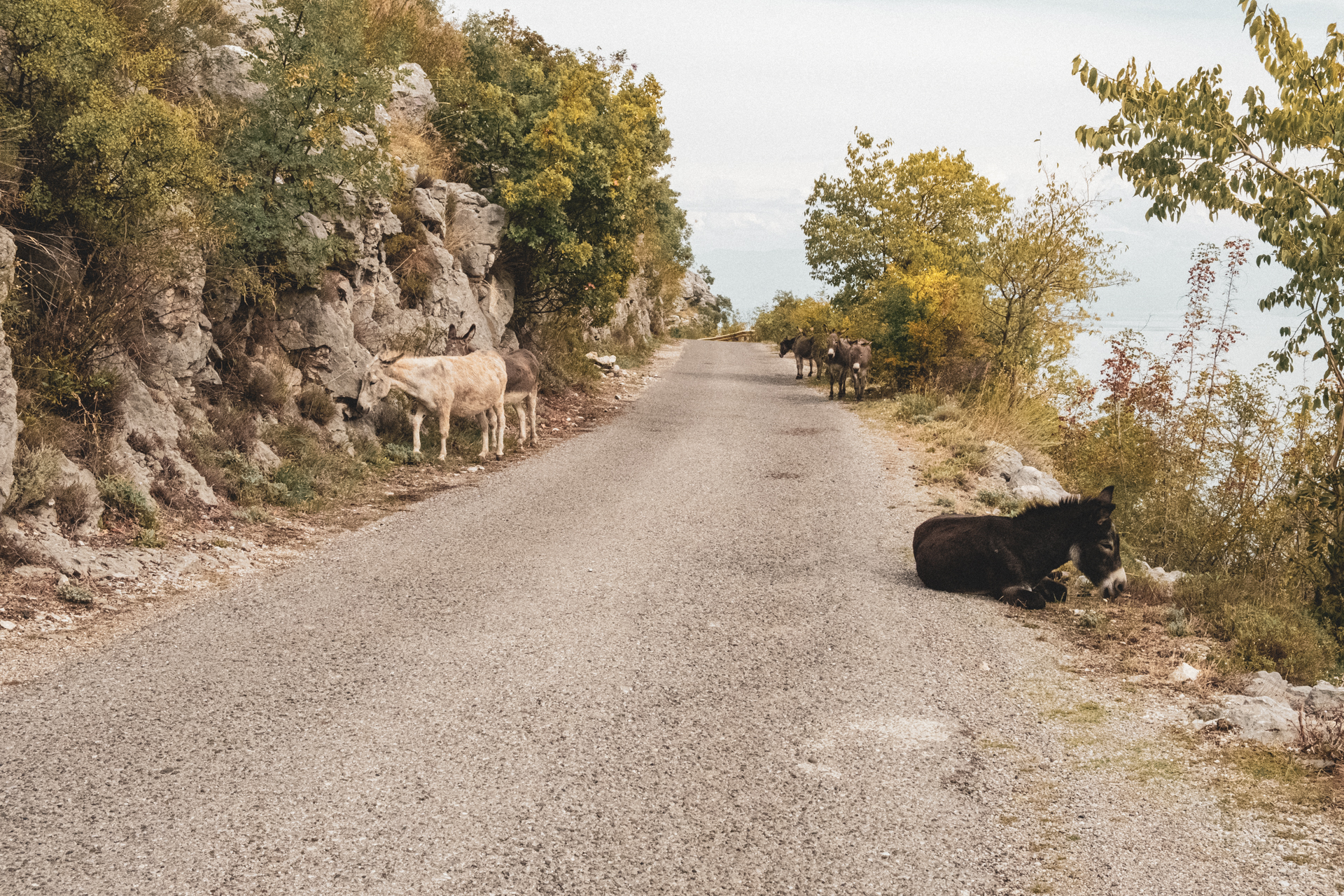 Ab und zu steht dann da auch nochmal eine Gruppe an Eseln auf der Straße. Die lassen sich aber auch nicht stören. Ich glaube gestern hatte ich auch eine Situation mit einer Kuh. Die Kuh war mit einem Strick an einem Baum neben der Straße angebunden. Der Strick war aber etwas länger. Die Kuh stand auf der anderen Seite und spannte einen Stolperdraht einmal über die Straße. Da darf man nicht zu schnell fahren. Sonst wäre das echt übel ausgegangen. Also auf die Kuh zufahren, dass die sich wieder rüber bewegt.