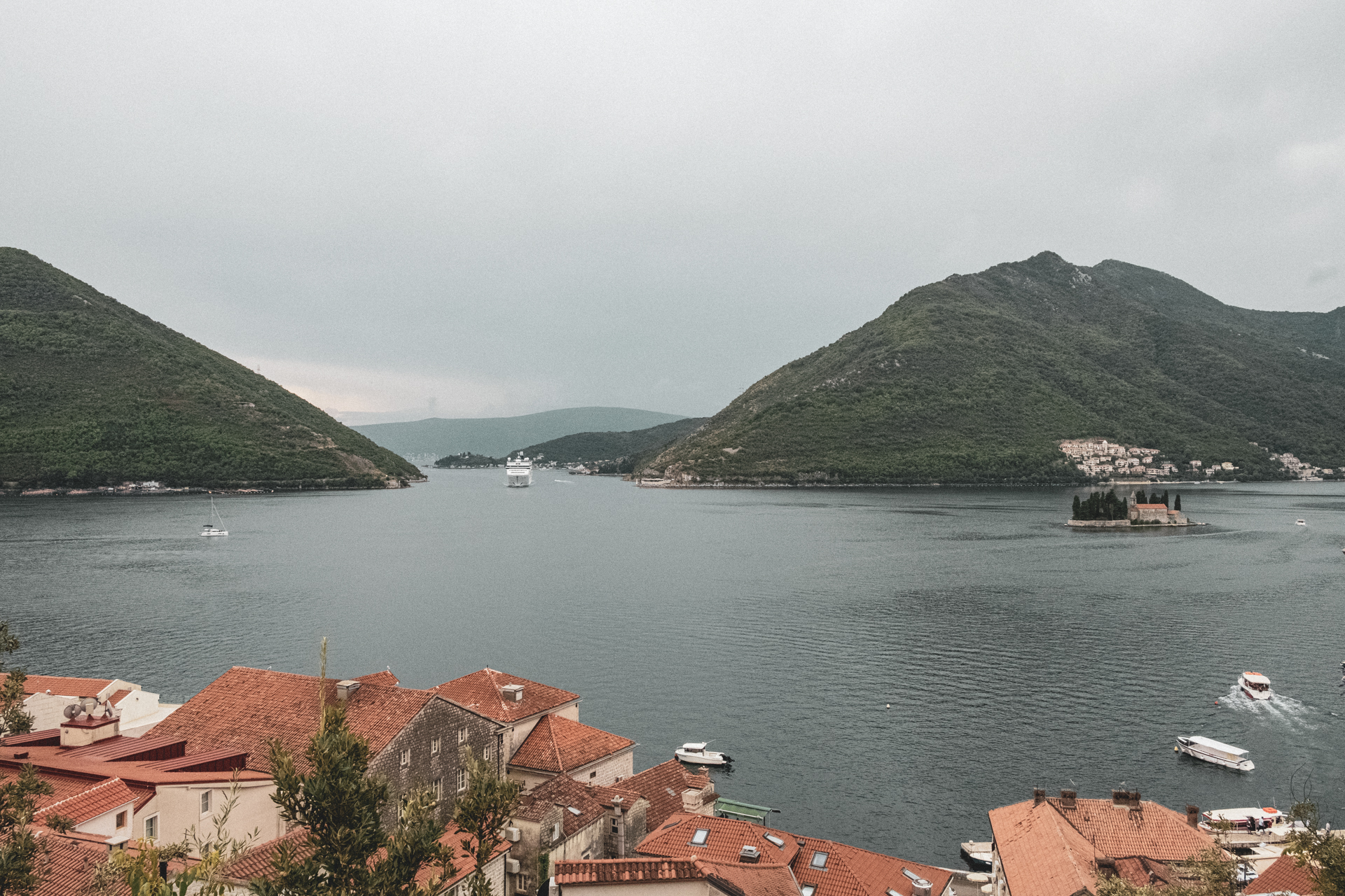 Irgendwann schlage ich dann von meiner Panorama Route wieder die Richtung Küstenstraße ein. Bei Kotor nehme ich noch einmal den langen Landweg um den kompletten Fjord oder die Meereszunge und fahr die ganze Strecke ab. Das dauert zwar ewig, ist aber auch sehr schön anzusehen. Auch wenn hier der Verkehr auf der kleinen Straße doch schon zunimmt.