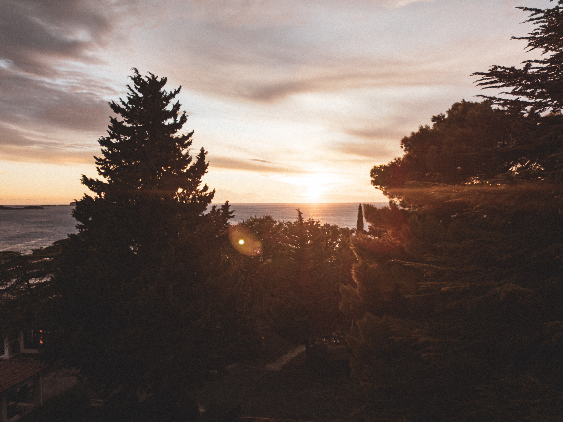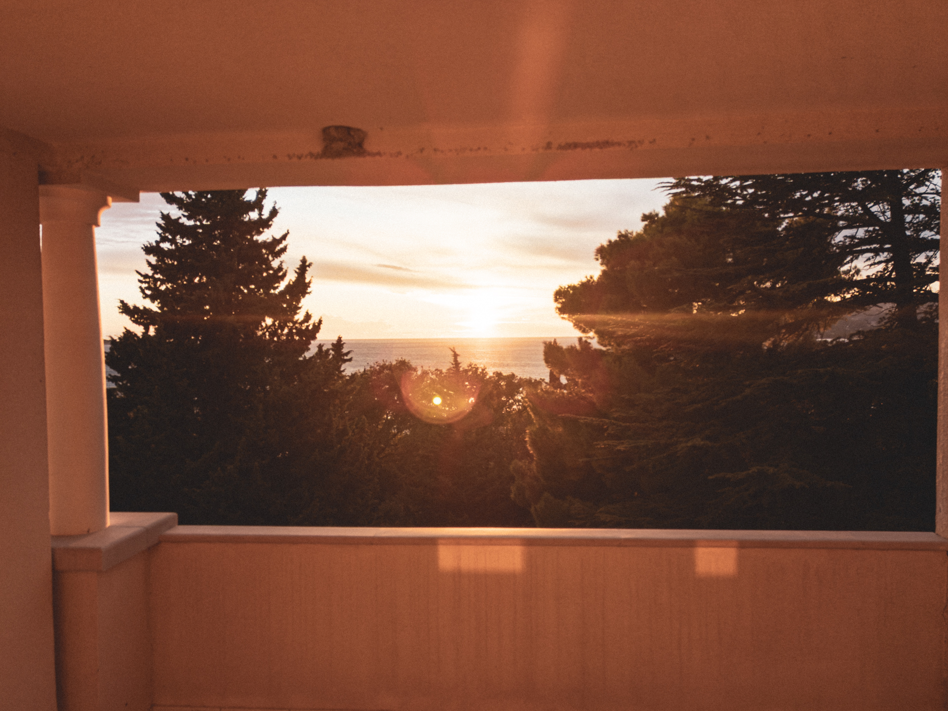 Dafür war die Aussicht super. Riesiger Balkon. Mit unverbautem Blick auf das Meer und den Sonnenuntergang. Das war dagegen schon viel besser als die letzten Tage. Reminder an mich selbst: Eine Balkonbrüstung versteckt vielleicht bei anderen Menschen, dass die dort nur in Unterhose stehen, das gilt aber nicht mehr zwingend bei deiner Größe.