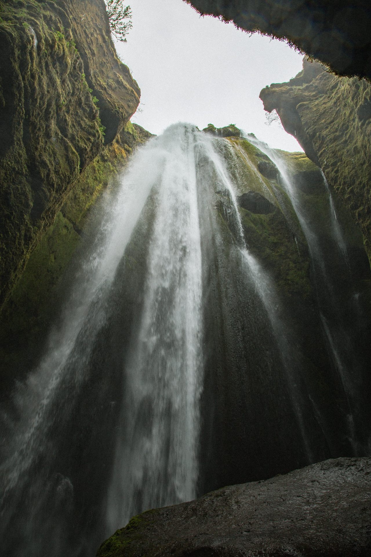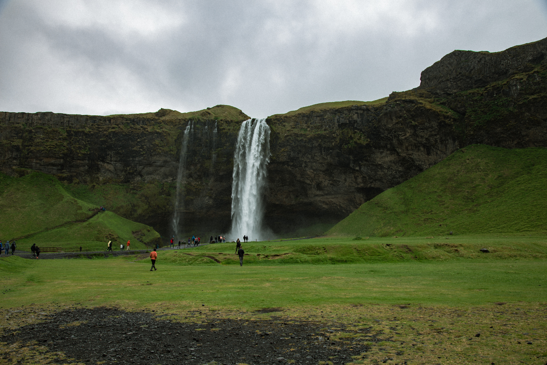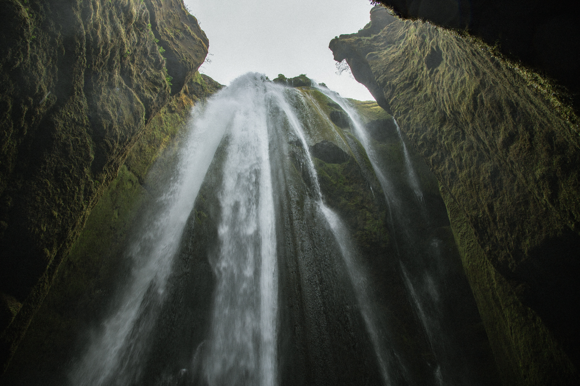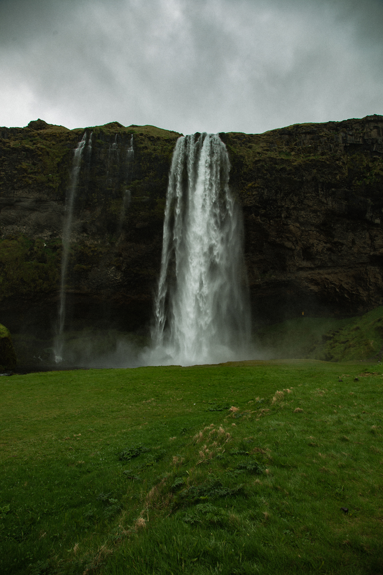 Der Seljalandsfoss Wasserfall ist a) leider geil und b) leider voll der Touristen Magnet. Der riesige Wasserfall hat über die Jahrhunderte ( reine Vermutung ) eine Aushöhlung hinterlassen. Man kann also gemütlich einmal um die Wassersäule laufen und hinter den Wasserfall gehen. Leider tun das eben alle der nicht enden wollenden Touristenströme. Nun gut. Es sind zwar nur so 100 auf einmal die sich um den Wsserfall verteilen. Aber es sind eben auch mehr, als, dass die nicht auf einem Foto auffallen würden und ständig im Weg stehen. Trotzdem ist der Wasserfall wirklich beeindruckend.