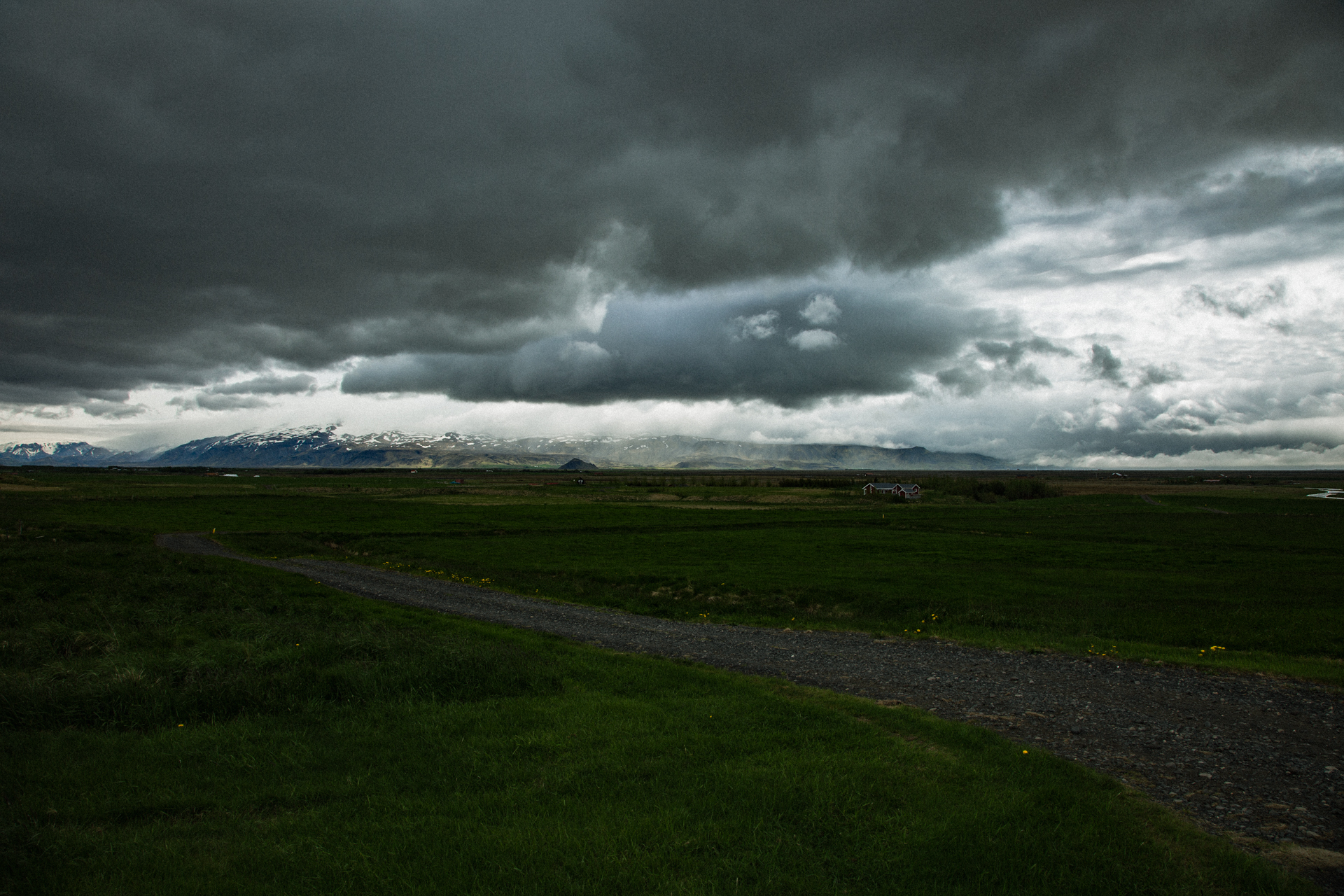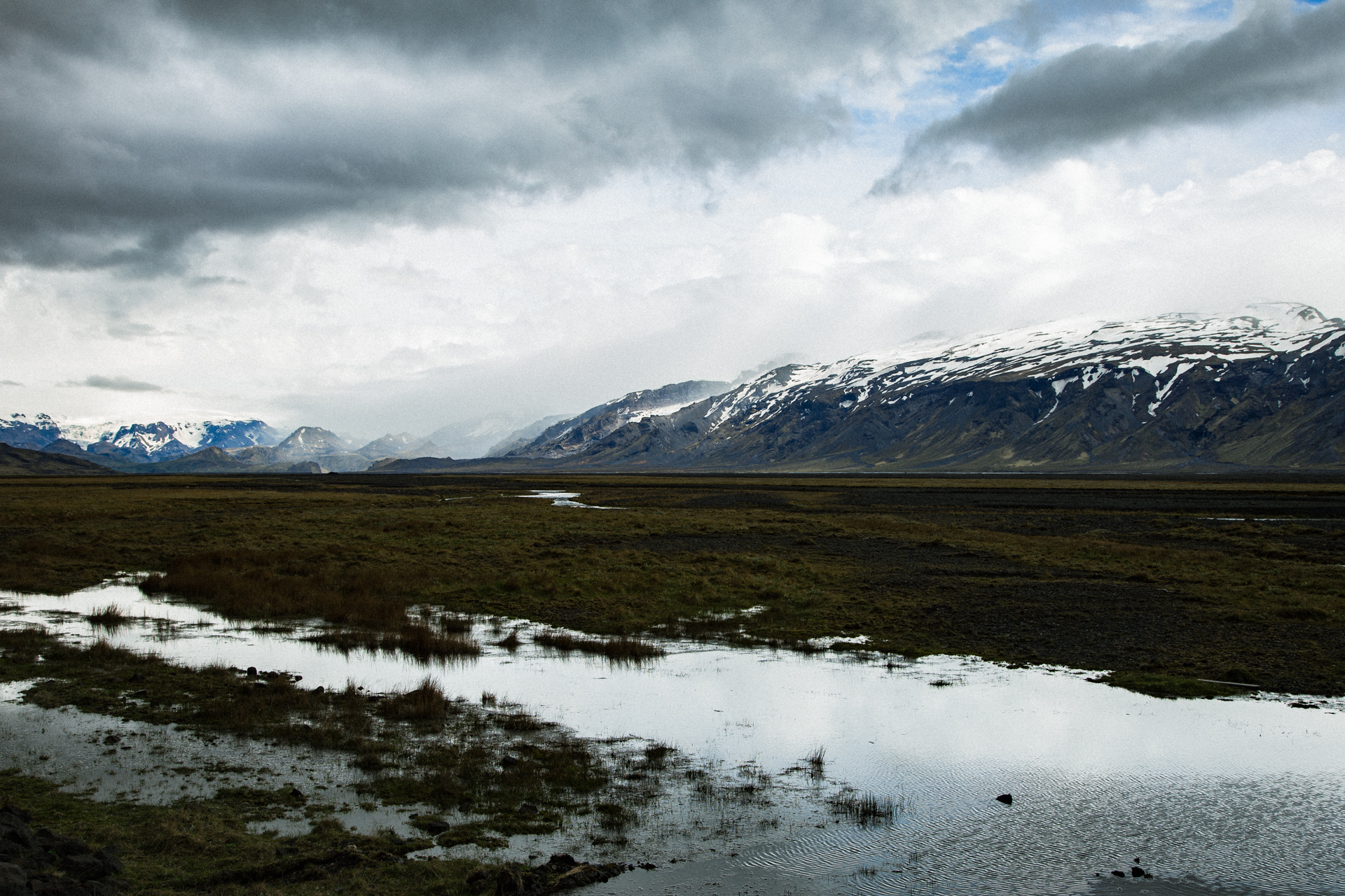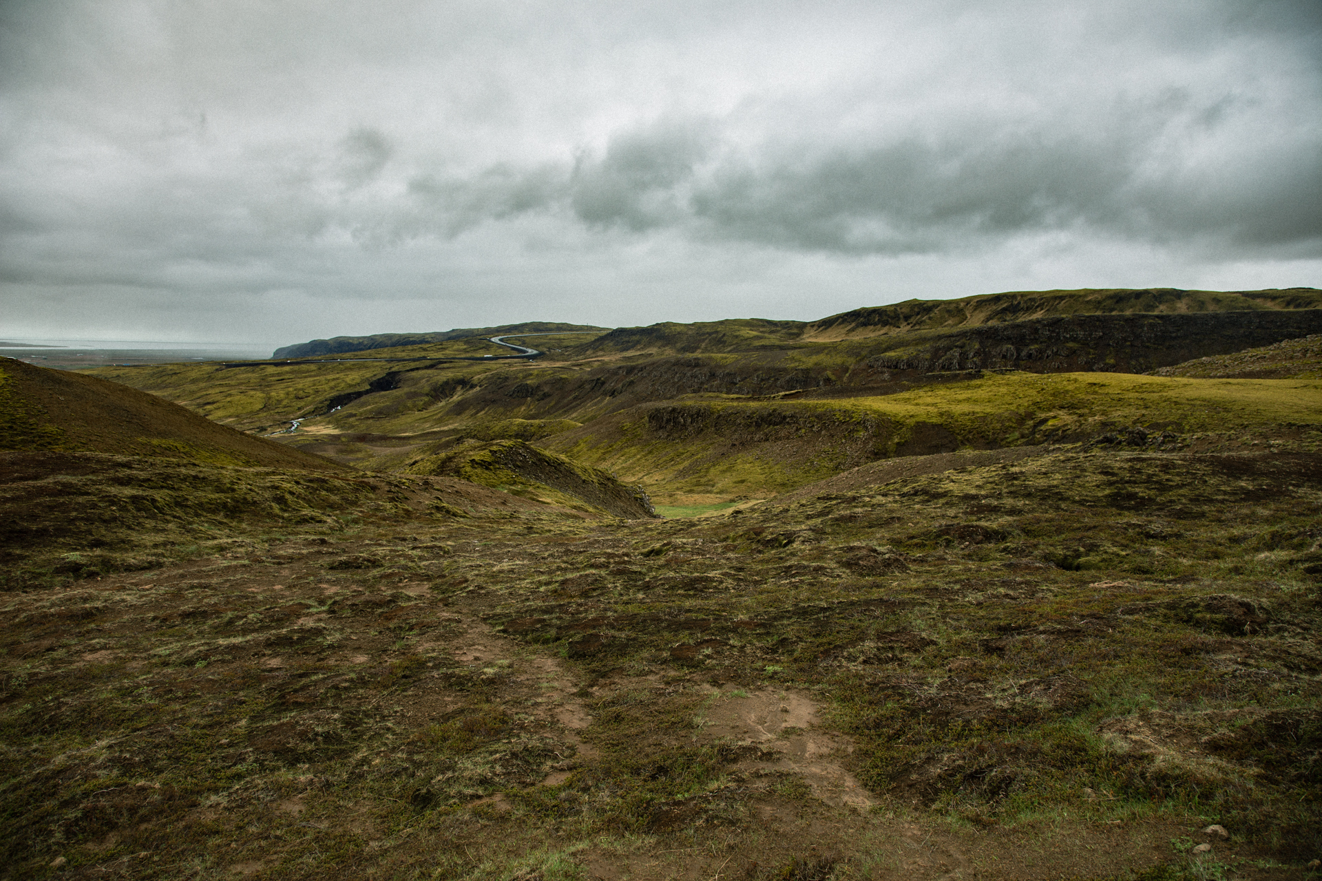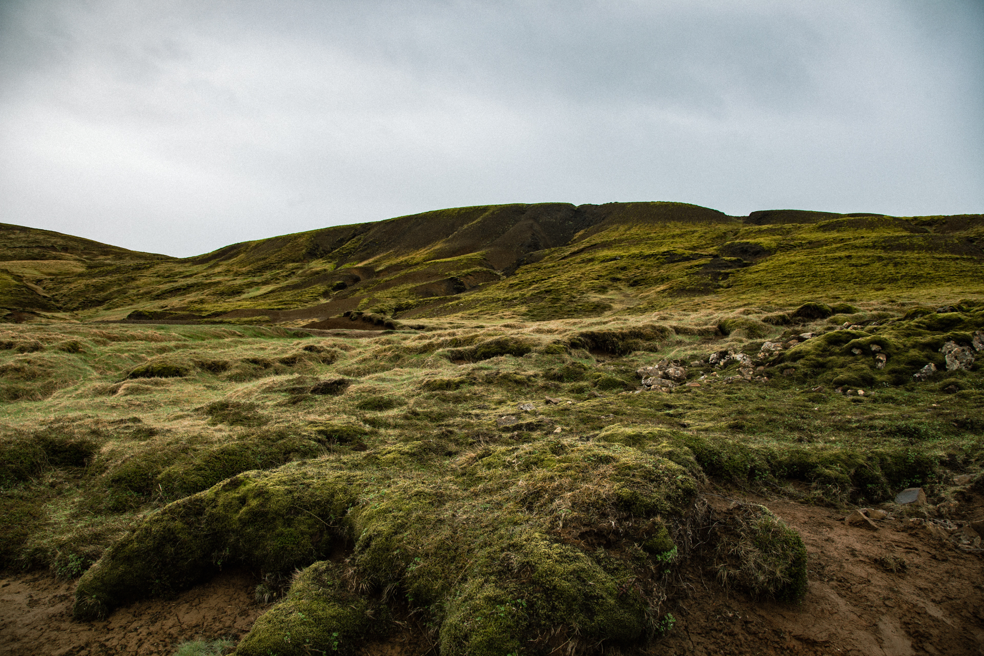 Vom Parkplatz aus sollen es drei Kilometer zu Fuss sein bis man an die heißen Quellen kommt. Gleich nach dem Parken und den ersten Metern den Berg hinauf kommt dir aber schon der Geruch von Schwefel entgegen. Alles Wasser das dir entgegenströmt ist mehr als Handwarm. In dem warmen Wasser schimmern die Algen. Aber es geht noch eine Kurve um den Berg und dann noch eine. Dann gibt es noch einen kleinen Wasserfall. Dann noch eine Kurve und noch eine. Wie viel Meter sollten es sein? Fast ganz oben angekommen gibt es eine keine Ponystation. Ein paar Pferde sind eingepfercht während ihre Besitzer im Wasser baden gehen. Das war der erste wirkliche tolle Eindruck von Island was Berge, Wasserfälle und heiße Quellen angeht.