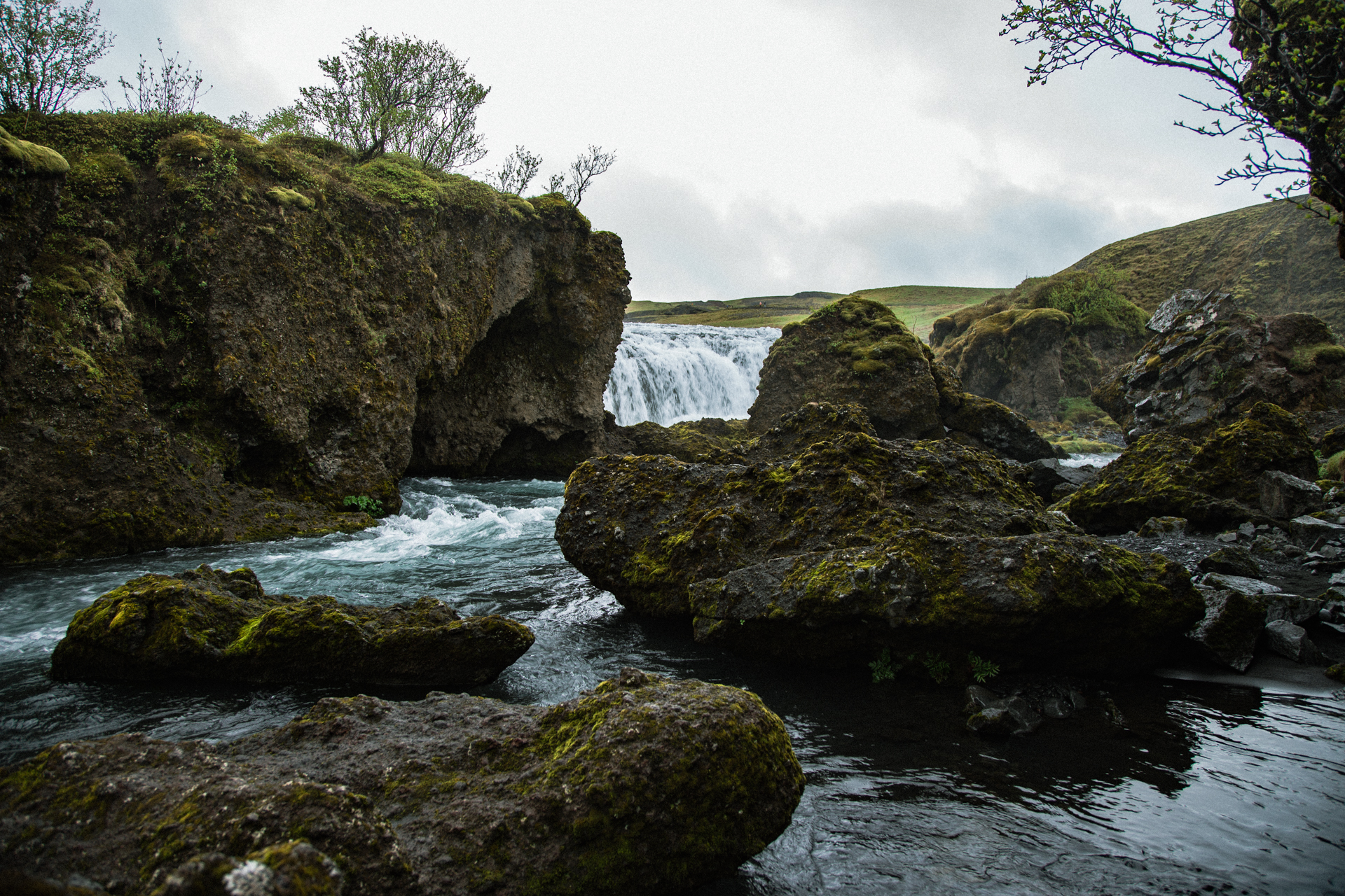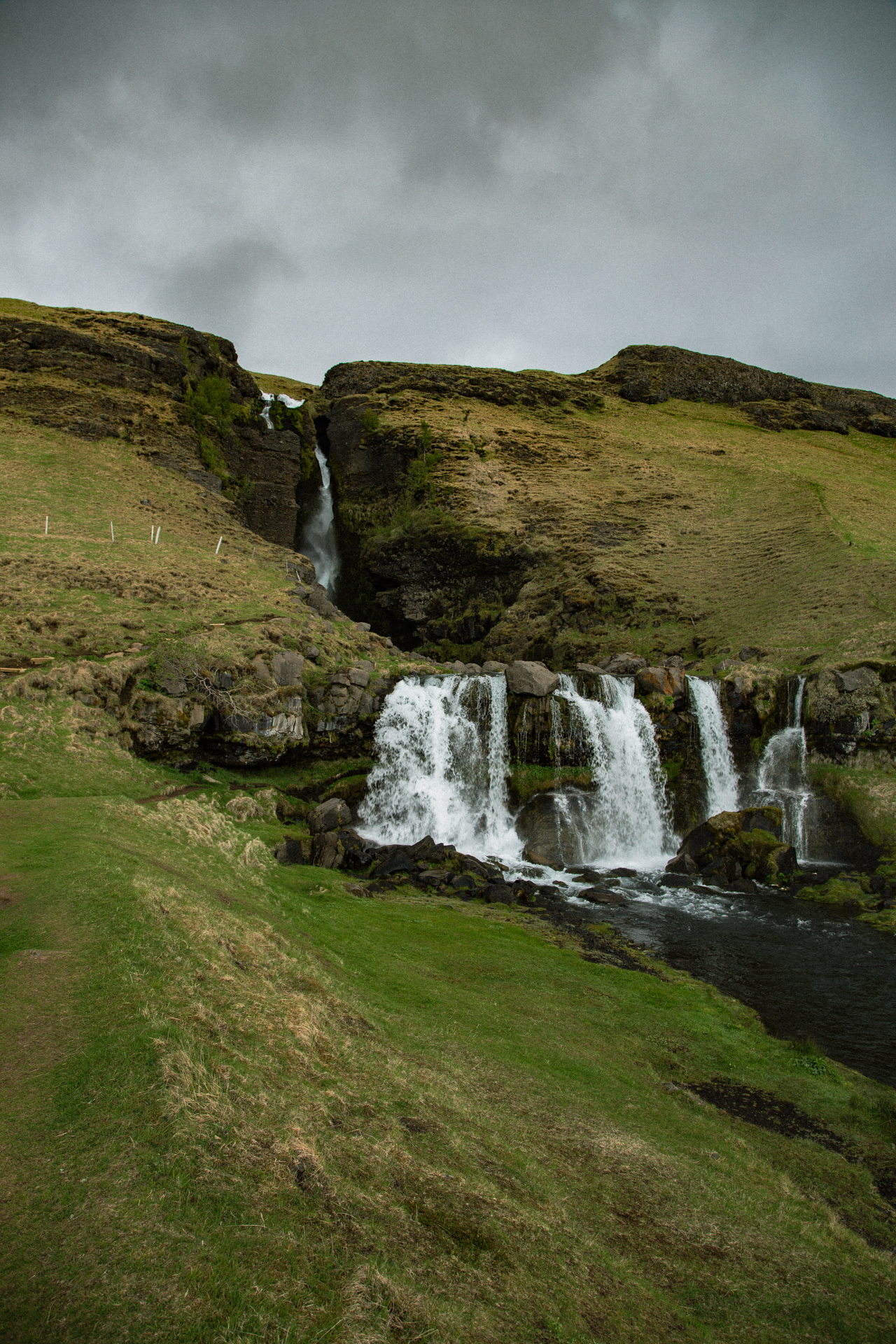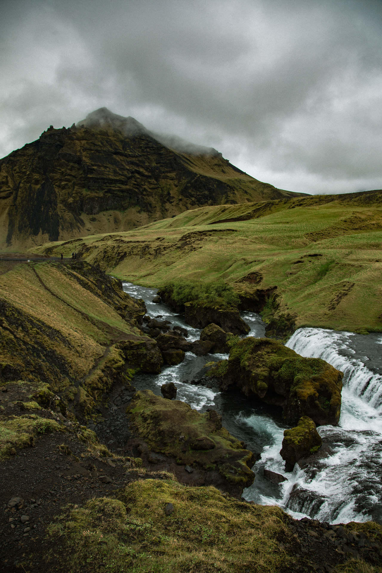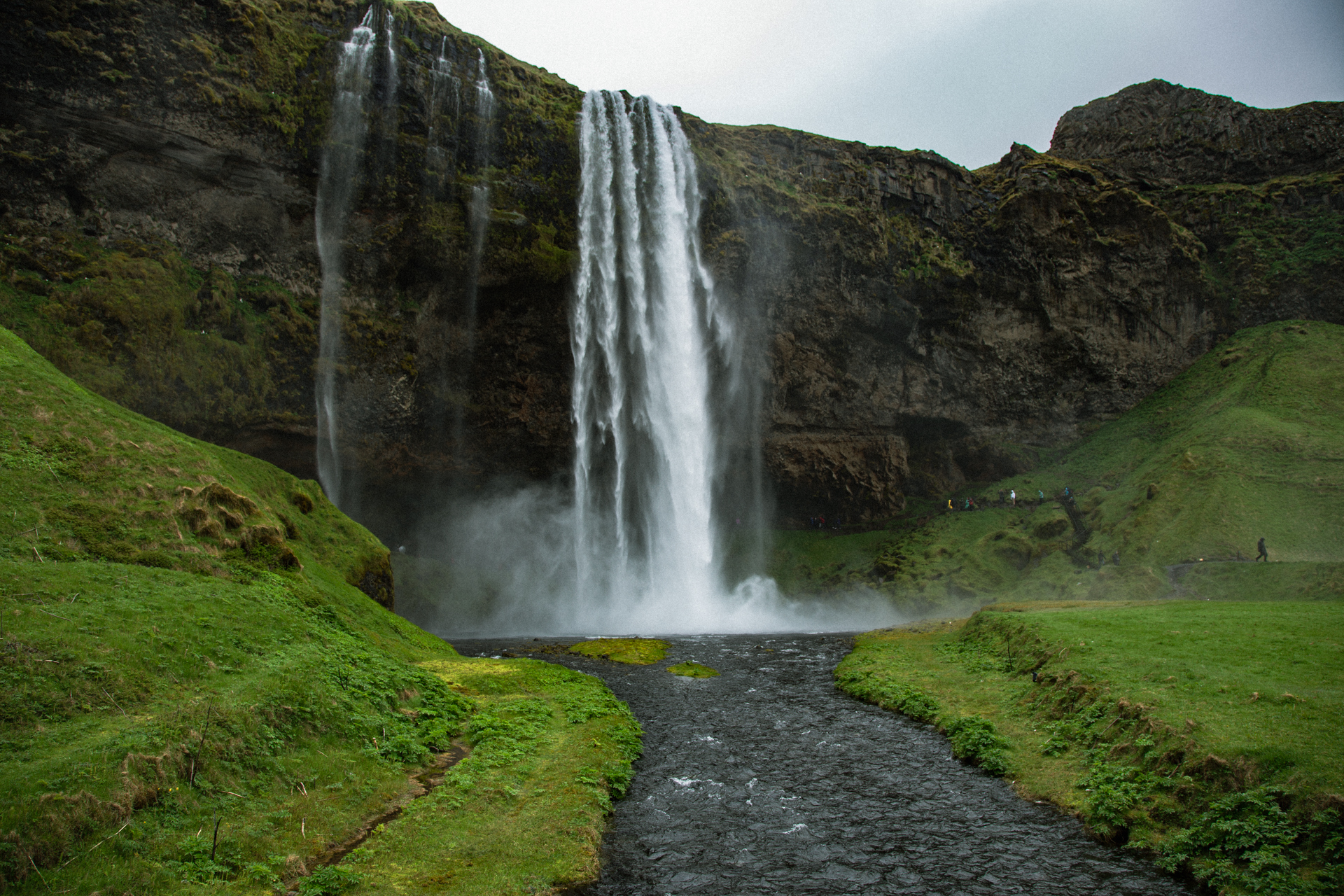 Vom Parkplatz aus sollen es drei Kilometer zu Fuss sein bis man an die heißen Quellen kommt. Gleich nach dem Parken und den ersten Metern den Berg hinauf kommt dir aber schon der Geruch von Schwefel entgegen. Alles Wasser das dir entgegenströmt ist mehr als Handwarm. In dem warmen Wasser schimmern die Algen. Aber es geht noch eine Kurve um den Berg und dann noch eine. Dann gibt es noch einen kleinen Wasserfall. Dann noch eine Kurve und noch eine. Wie viel Meter sollten es sein? Fast ganz oben angekommen gibt es eine keine Ponystation. Ein paar Pferde sind eingepfercht während ihre Besitzer im Wasser baden gehen. Das war der erste wirkliche tolle Eindruck von Island was Berge, Wasserfälle und heiße Quellen angeht.