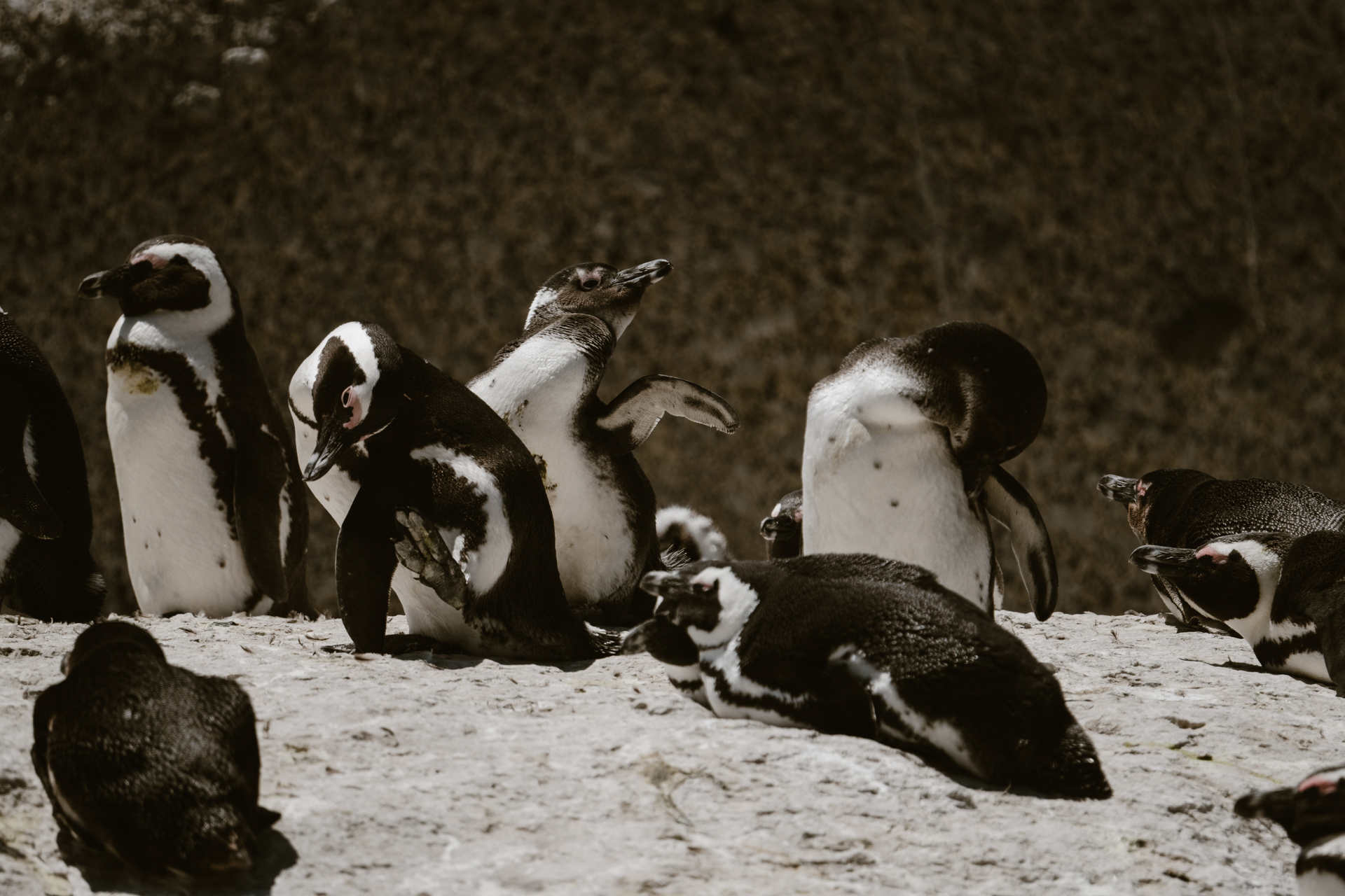 Und diese Art ist inzwischen leider gefährdet. Der Bestand auch in dieser Kolonie geht immer weiter zurück. Es gibt noch ein paar andere Kolonien in Südafrika. Auch hier mit langsam sinkenden Beständen. Woanders kommt das Tier nicht natürlich vor.