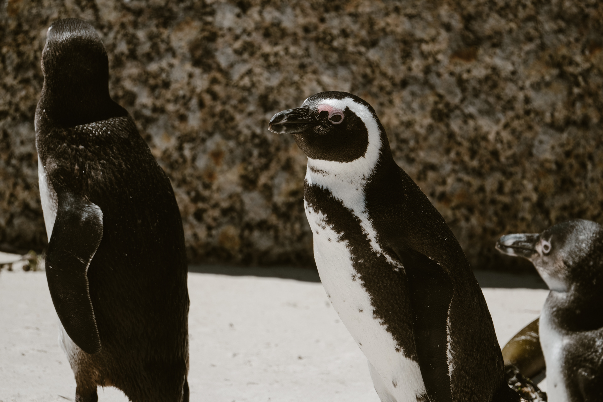 Der Strand sieht auch echt mega aus. Heller Sand. Türkisblaues Wasser. Und große, runde Felsen die hier am Stand im Wasser liegen. Fast ein bisschen wie auf den Seychellen. Richtig gut. Vermutlich die Namensgeber. Aber wir sind wegen der Pinguine hier.