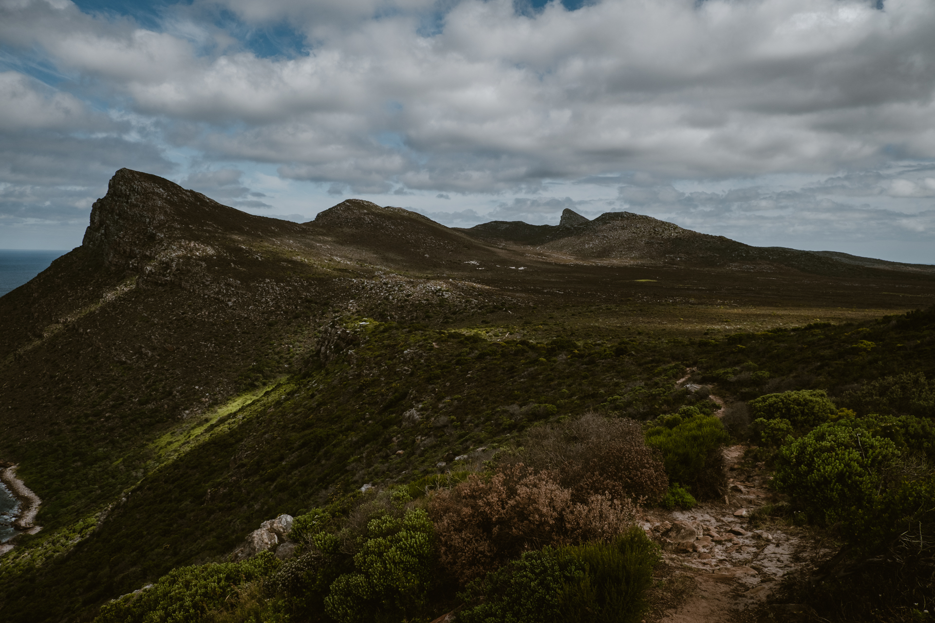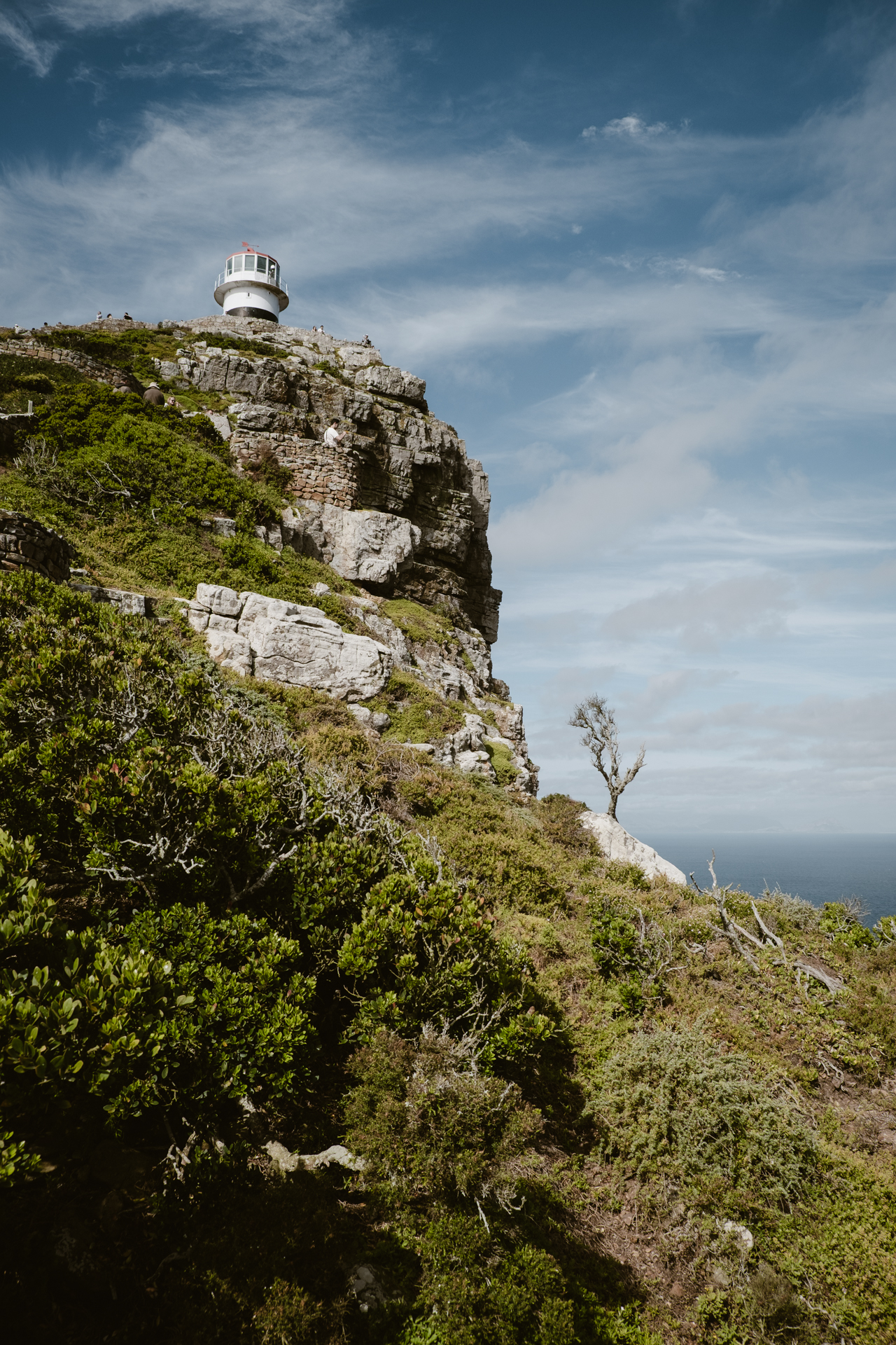 Wir fahren vor bis zum Parkplatz Cape Point. Hier stehen schon viele Busse. Hier gibt es ein Besucherzentrum und Gastro. Hier gibt es auch eine kleine Bergbahn mit der man zum Aussichtspunkt mit Leuchtturm fahren. Wenn das Teil nicht gerade außer Betrieb wäre. Wir wären in jedem Fall gelaufen. Vorne hat man einen besseren Ausblick über das Kap. Außerdem gibt es noch den alten Pfad des Leuchtturmwärters der noch weiter nach vorne führt. Fast bis dorthin wo der aktuelle Leuchtturm steht. Vorbei an einem Kriegsbunker. Im 2. Weltkrieg stand hier eine geheime Radaranlage. Hier gehen aber kaum noch Touristen lang. Keine zwei Hände von der Massen an Touristen bewegen sich hier noch. Es ist schon halb fünf. Die Sonne steht schon tief. Mal gucken was Lightroom noch aus dem Gegenlicht rausholen kann. Also tolle Fotos hier vor allem am Morgen.