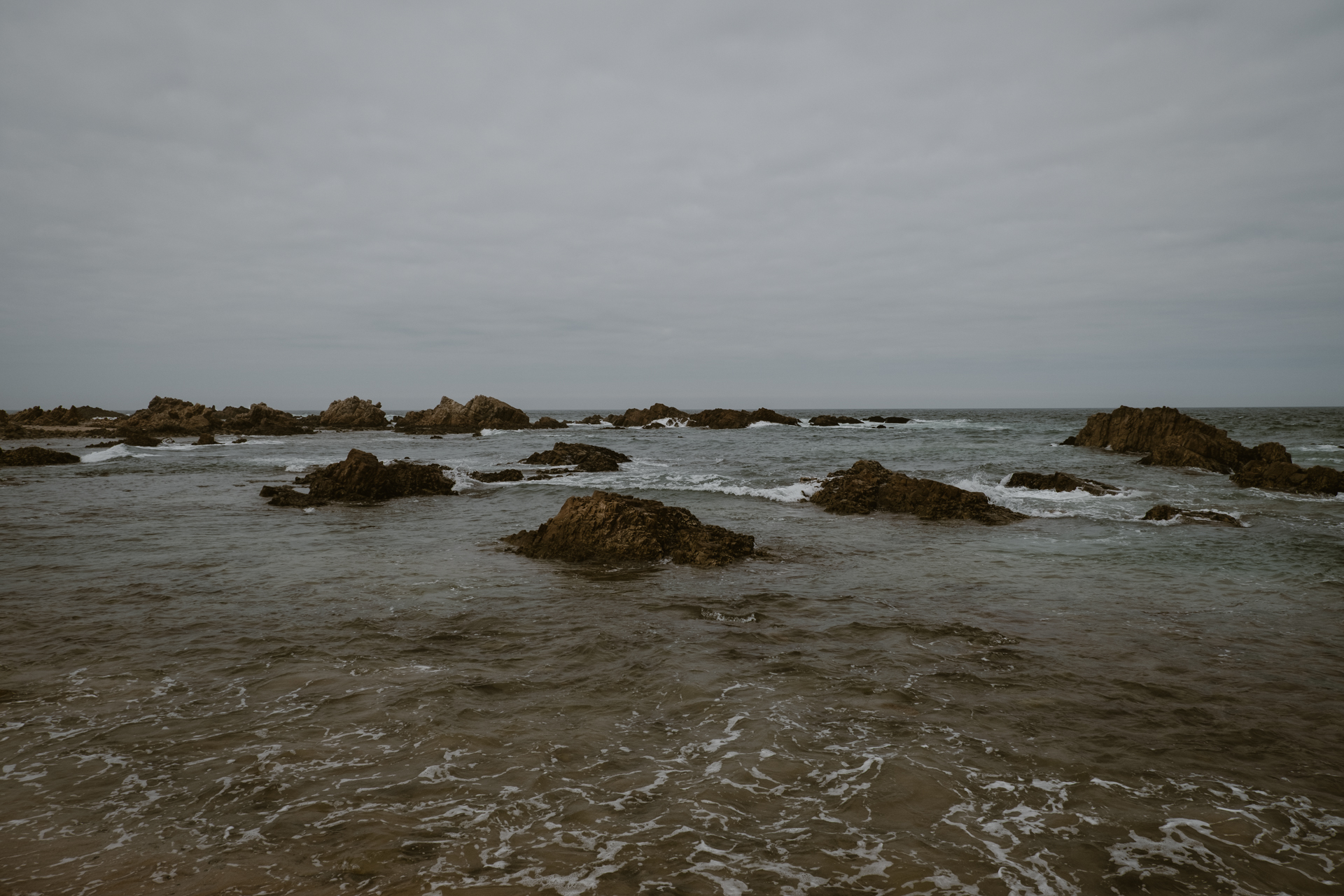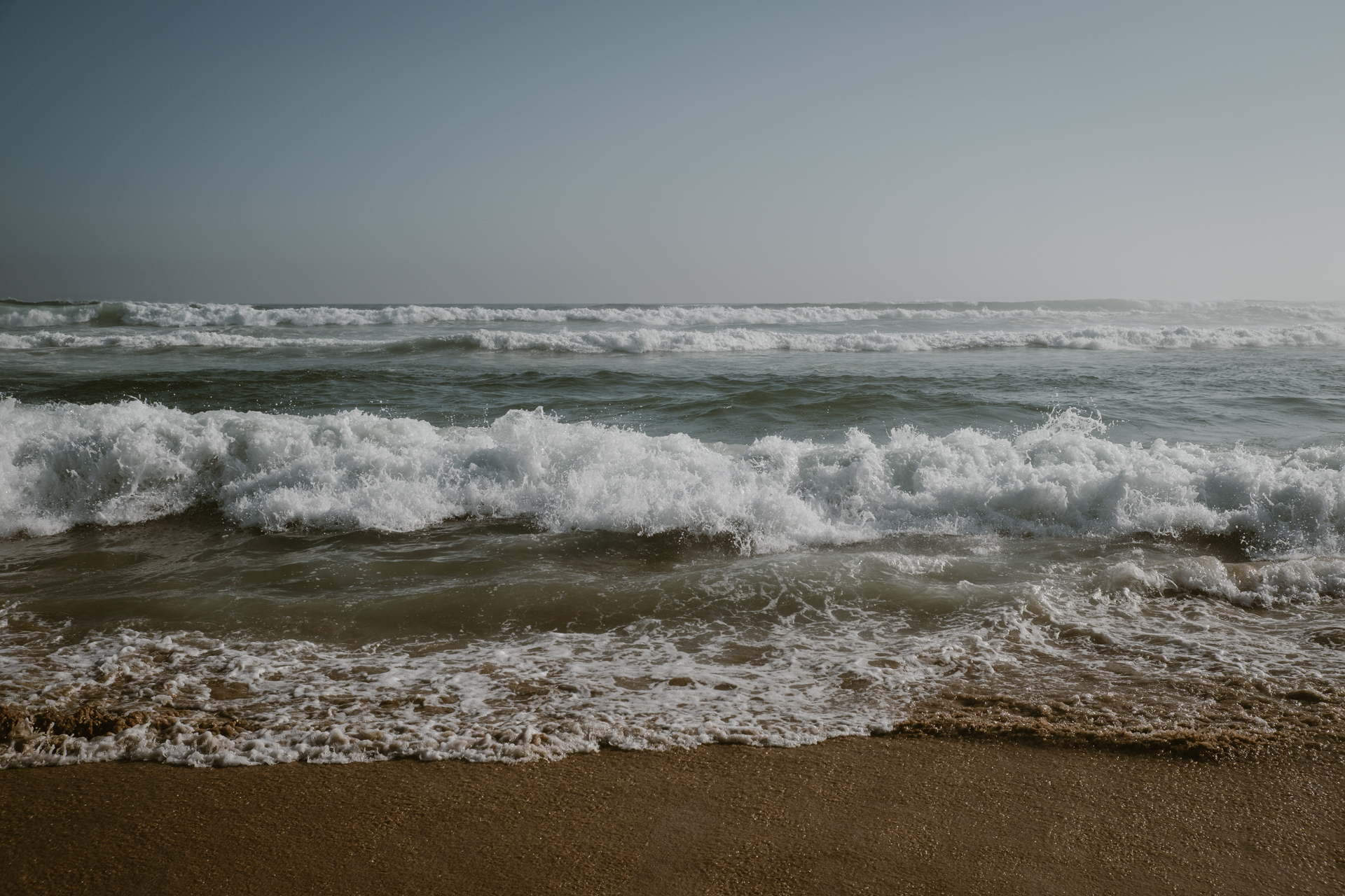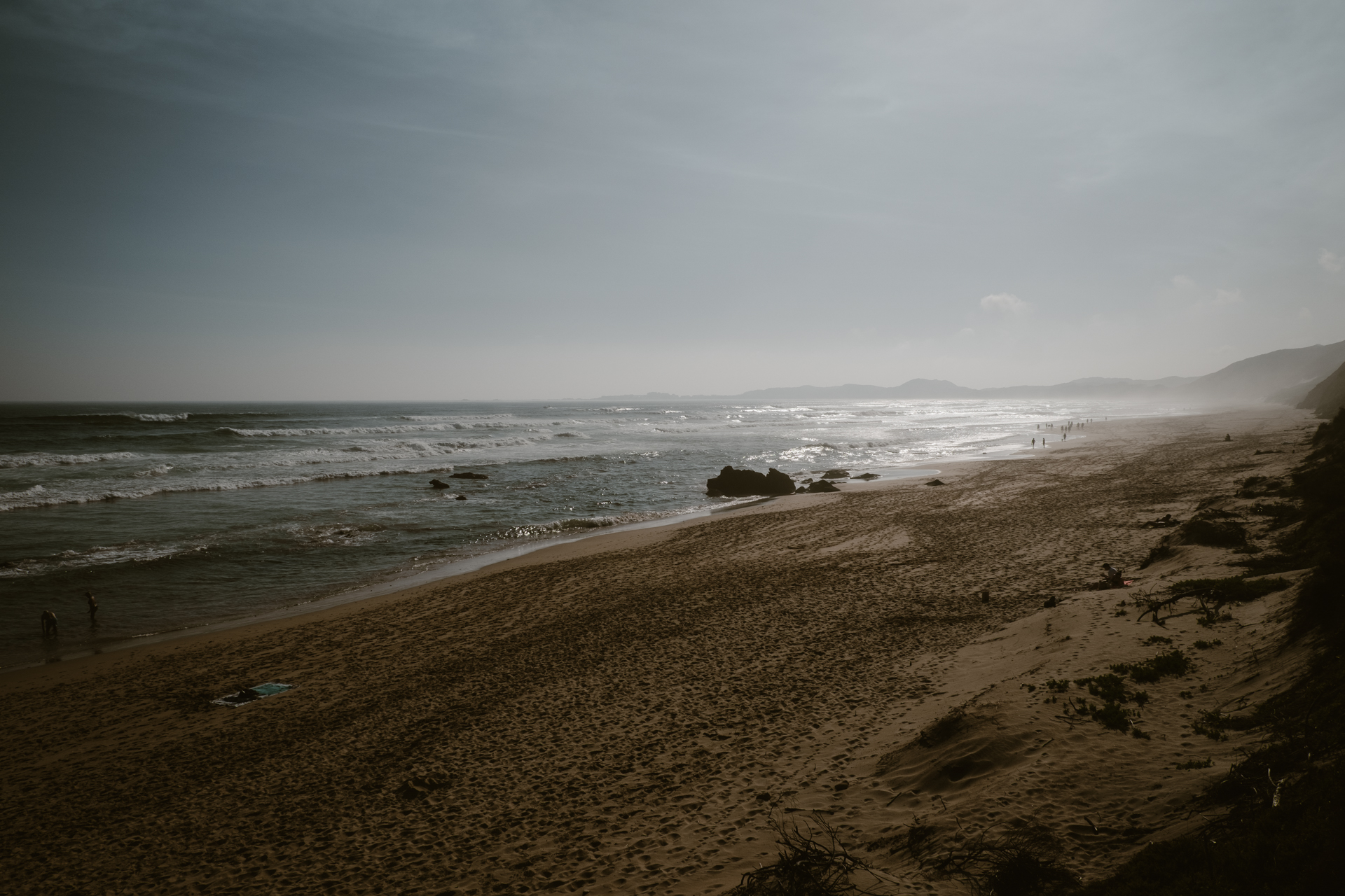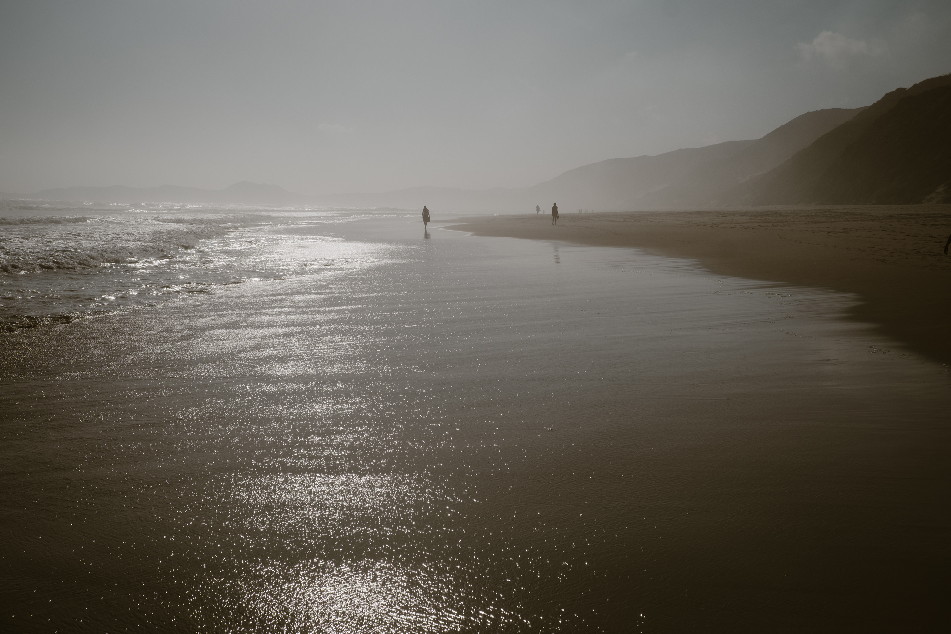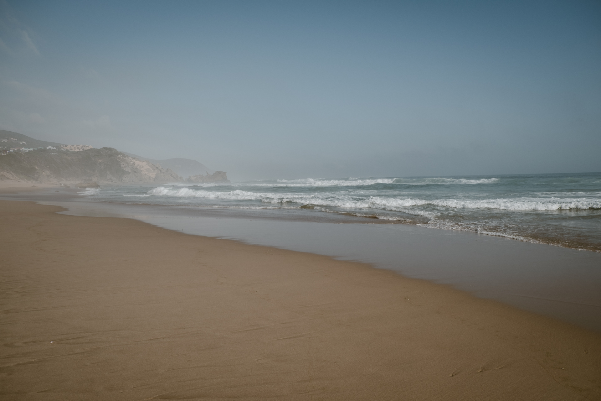 Wir gehen natürlich noch einmal runter an den Strand. Ein herrlicher Strand. Wieder so ein schöner diesiger Nebel in der Luft weil das kalte Wasser mit viel Kraft auf das warme Land trifft. Einfach schön hier.