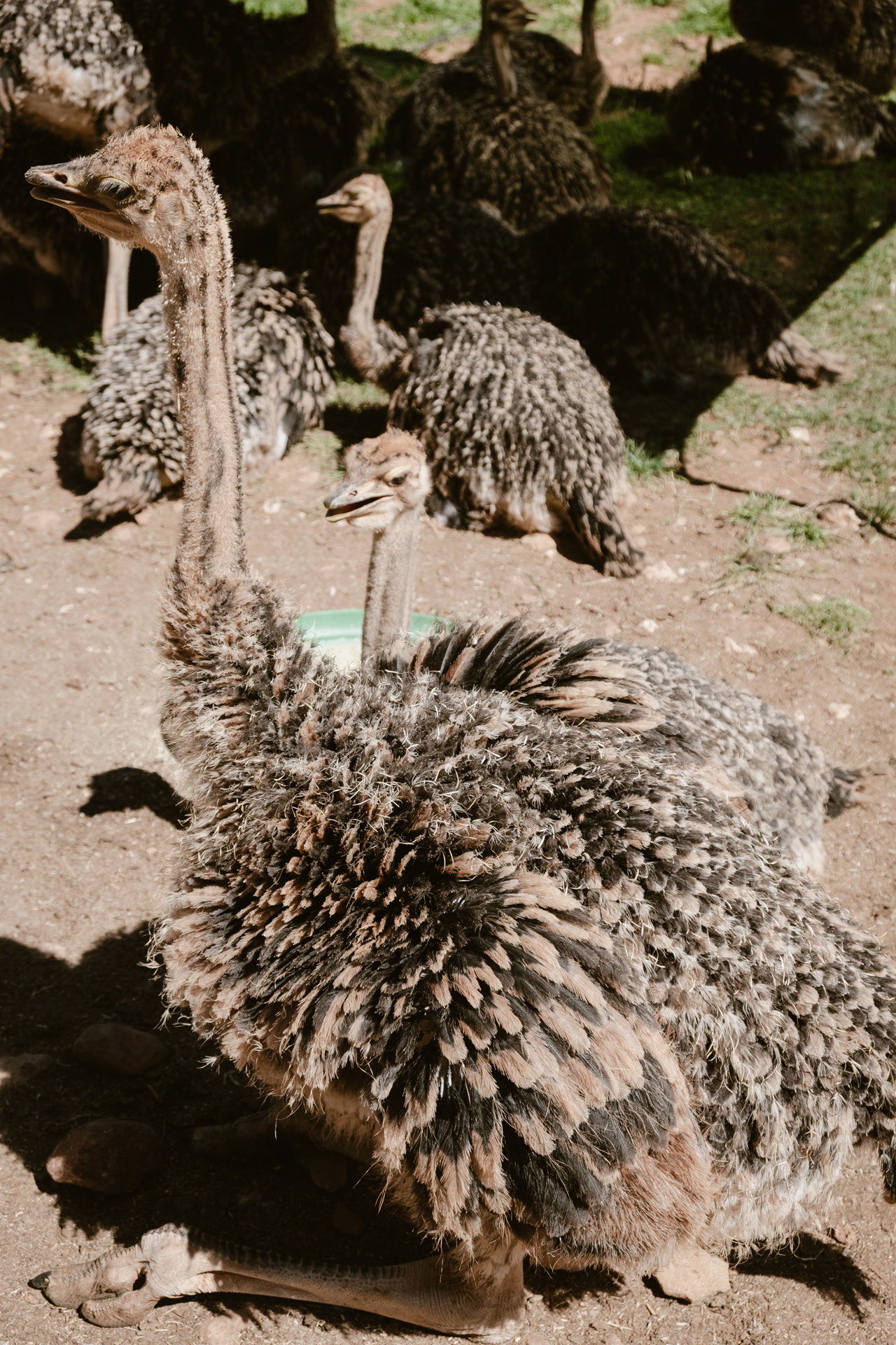 Heute finden wir dann doch noch ein paar mehr Strauße auf dem Gelände. Die Nachwuchsabteilung. Ganz viele kleine Baby-Strauße die nur ein paar Wochen oder Monate alt sein können.