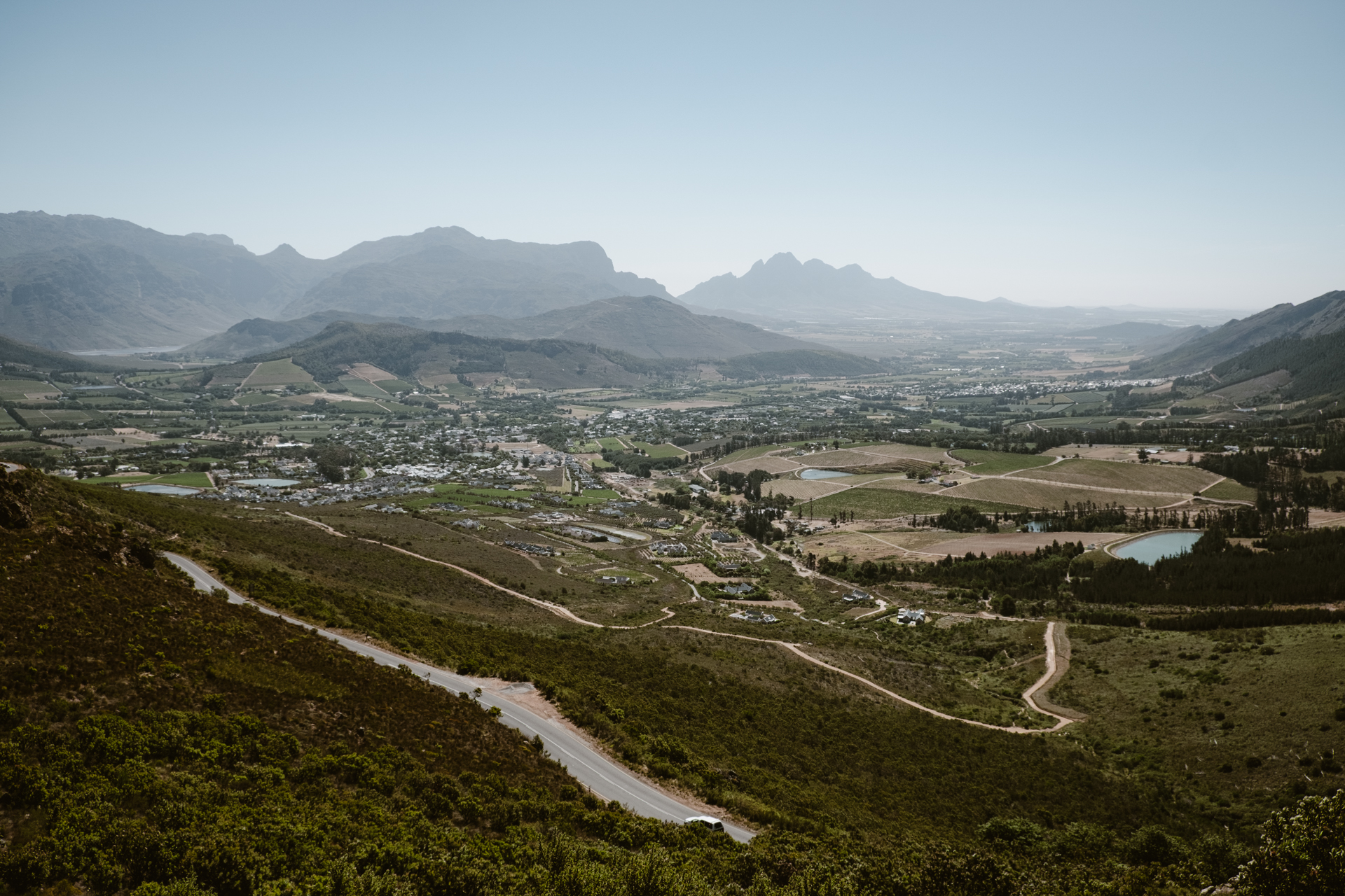 Dann kommen wir durch Franschhoek. Eine kleine Stadt aus dem Designer-Katalog. Wow sieht das hier alles schick und aufgeräumt aus. Die ganze Stadt ist nur schön angelegt. Immer wieder große Gutsherrenanwesen. Wirklich extravagante Hotels. Hier will man bestimmt nochmal absteigen. Das nötige Taschengeld einmal vorausgesetzt.